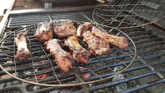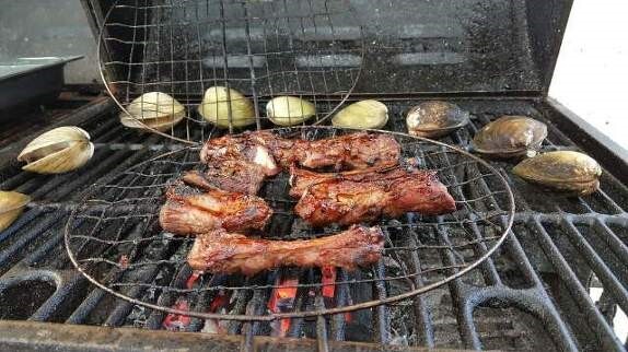 바닷가 바베큐그릴 위에서 직화 로 구워지는 바베큐 입니다.
