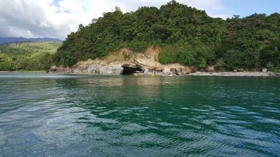 배(방카) 를 타고 바타안(bataan)의 바다안으로더 들어가 보니 저멀리 해안동굴이 보입니다.