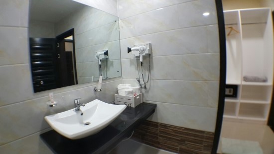화장실 에는 타월 , 헤어드라이기 , 각종 세면도구 가 준비되어 있습니다.