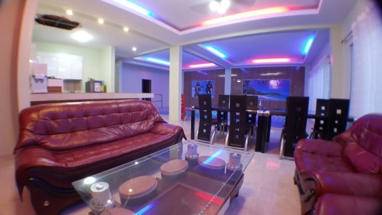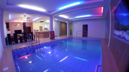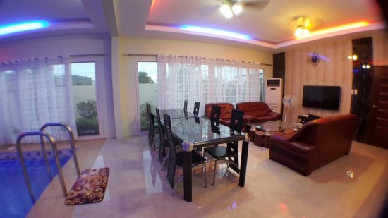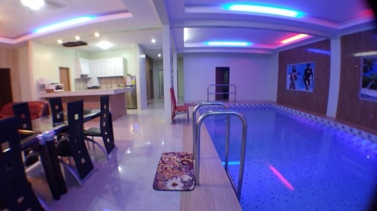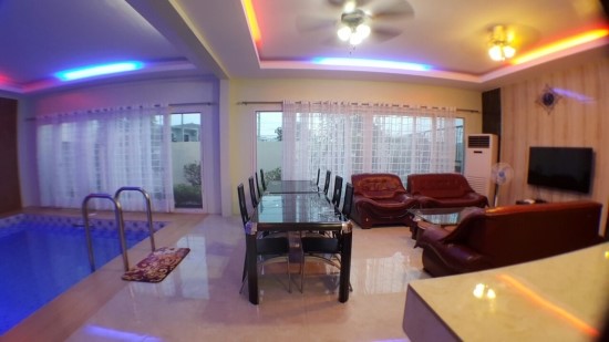 거실에 수영장과 노래방이 마련되있는 카라 풀빌라 입니다