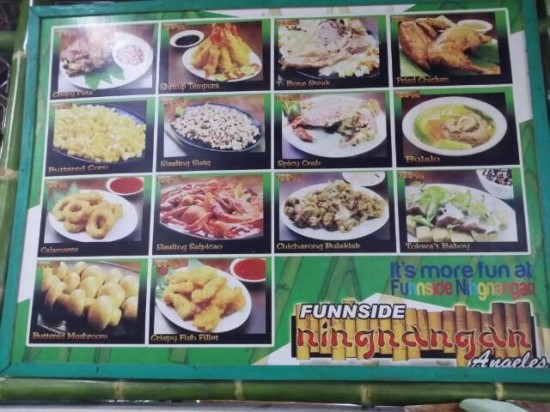 각종 필리핀요리 , 알리망호 , 연어 , 밥 , 내장 , 닭똥집 등이 있습니다.