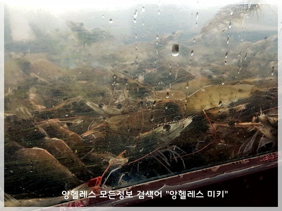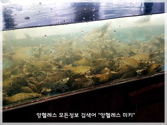 이 수조에는 살아있는 새우 가 가득 눈에 띕니다.