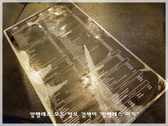 글씨가 깨알처럼 적힌 bnb레스토랑의 메뉴판 입니다.