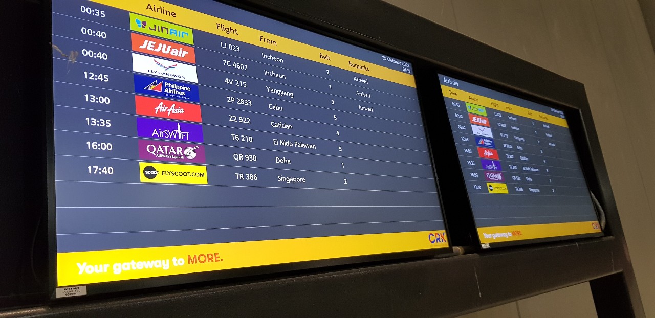 필리핀 클락 국제공항 도착비행기 안내 모니터