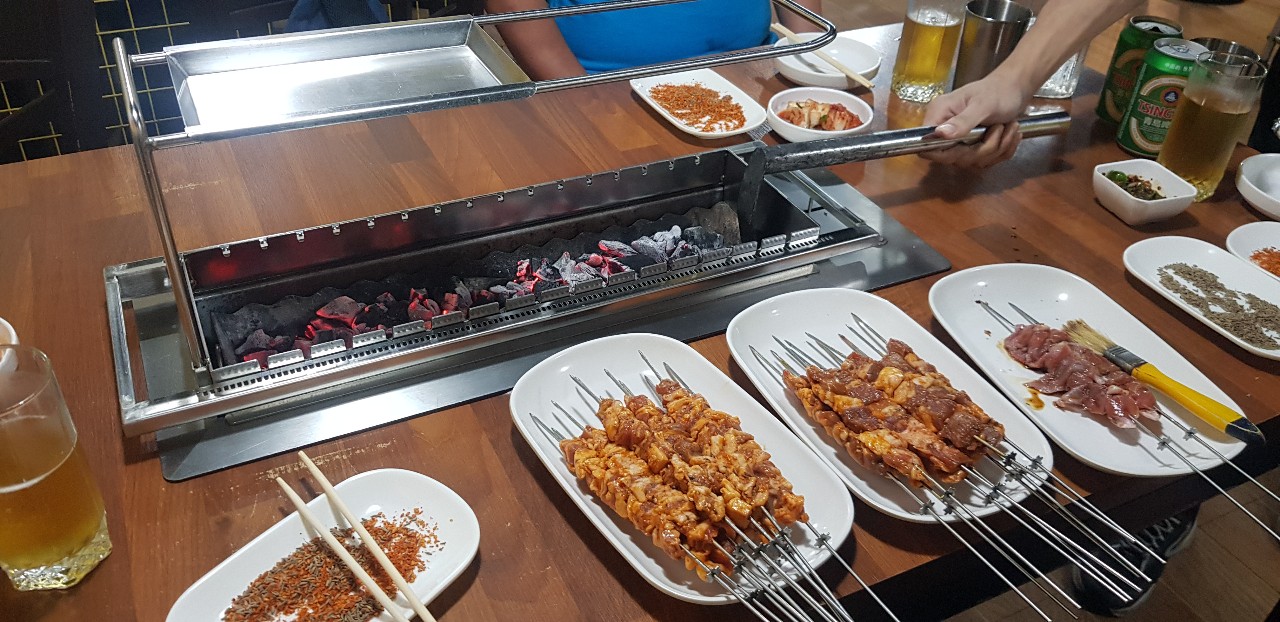 산미구엘 맥주, 칭따오 맥주, 양꼬지, 삼겹살꼬치 등