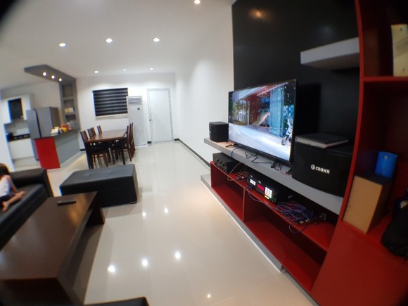 풀빌라 거실에는 노래방 이 설치되어 있습니다.