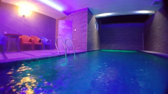 각방에 는 화장실이 함께 있으며 , 2층에 총 3개의 룸과 각방 화장실이... 1층에 노래방 과 수영장 ,주방 등이 있습니다.