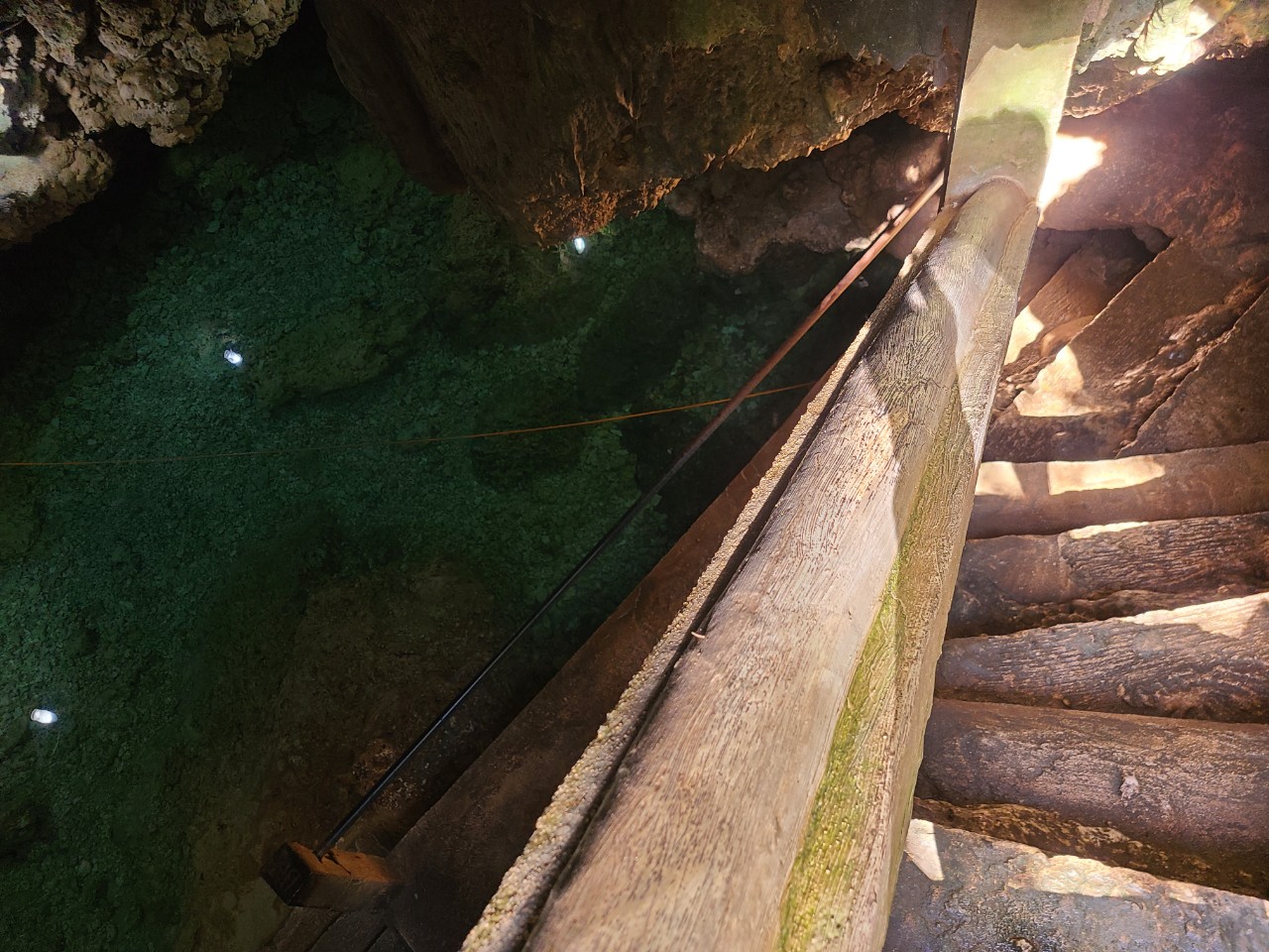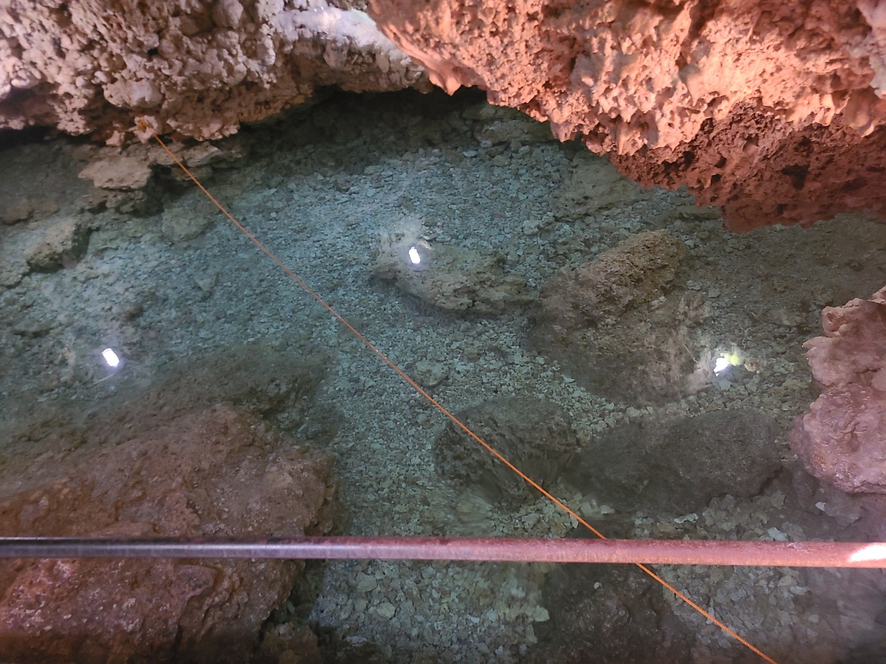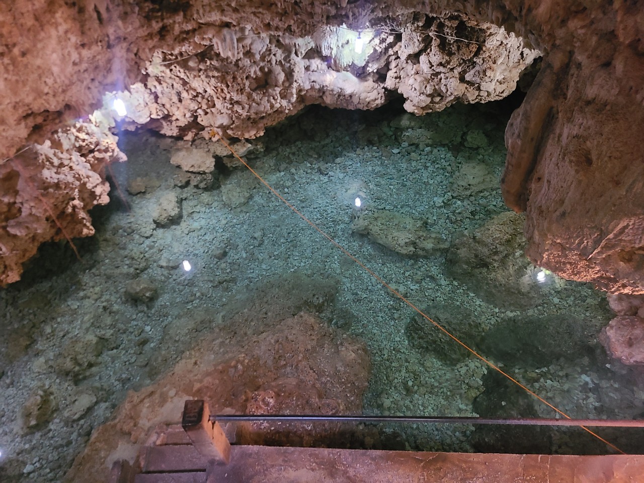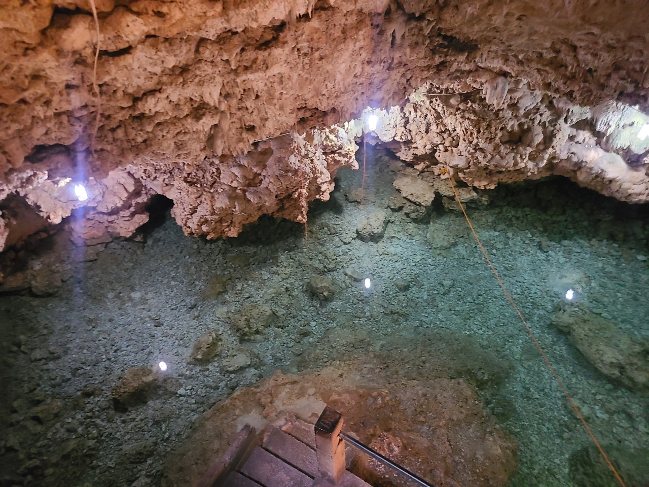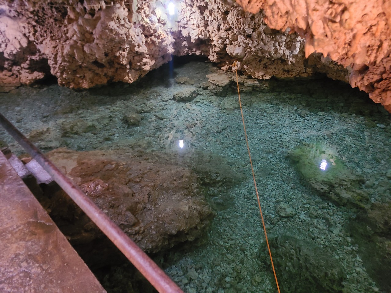 동굴입구를 통과해서 계단을 통해 약 5미터 정도 내려오면 이렇게 깨끗한 물이 있는