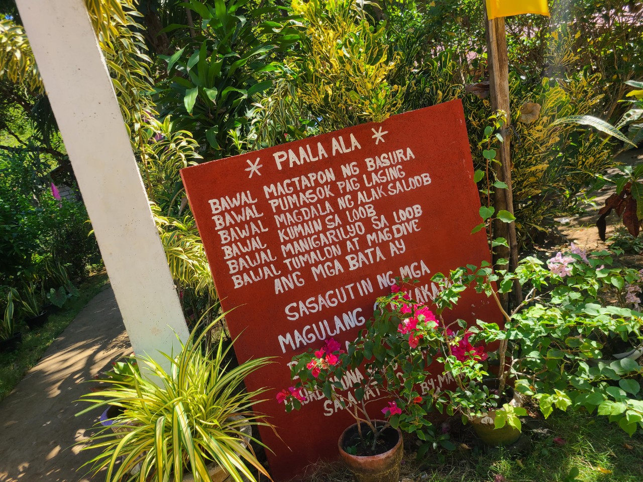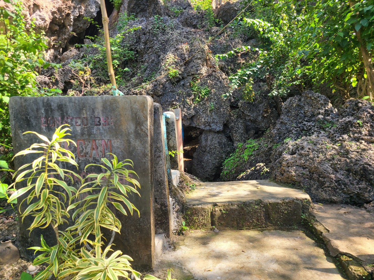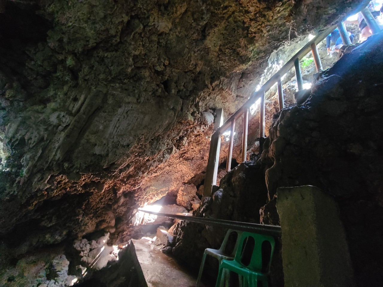 필리핀 국민언어 따갈로그어 로 동굴 입구에 표지판 , 안내판이 있습니다
