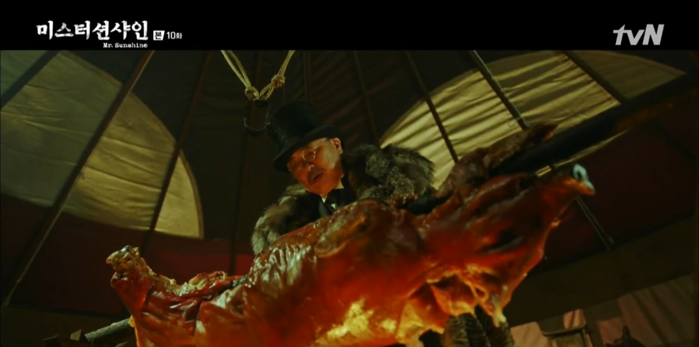 TVN 드라마 "미스터션샤인(MR SUNSHINE)" 에서도 "아기통돼지 바베큐" 를 즐겨 먹던 이완익 모습이 적나라게 묘사가 되었습니다.