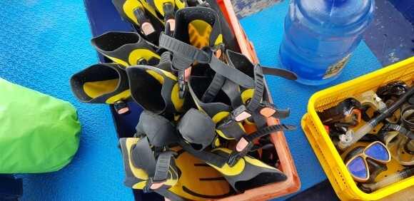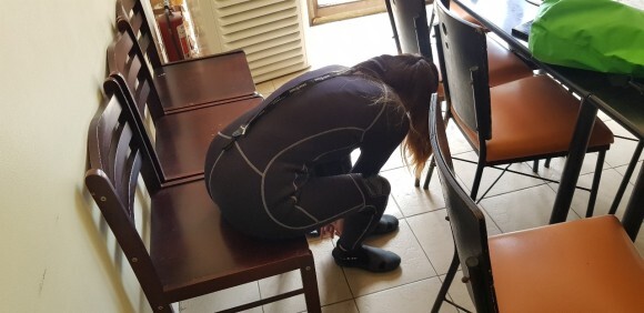 오늘 다이빙을 위한 바다로 출발전 에는 수트, 신발 을 먼져 샾에서 착용후 바다로 이동하게 된다
