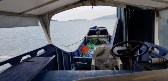 오늘의 다이빙 사이트로 출발을 위해 보트(방카) 에 올라탔다