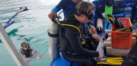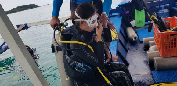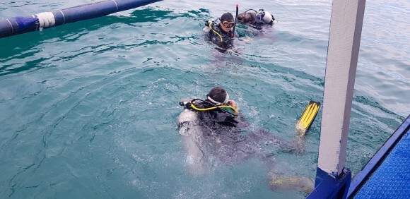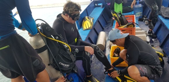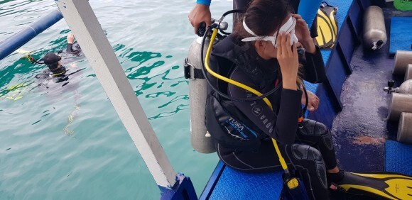 2인은 펀다이빙 1인은 체험다이빙 으로 함께 진행이 되었다