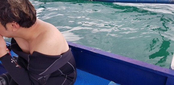 대부분 보트다이빙시 다이빙 입수동작이 뒤로 입수하는 동작이다.