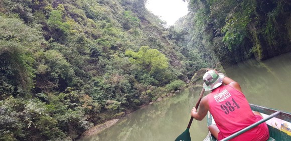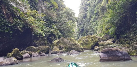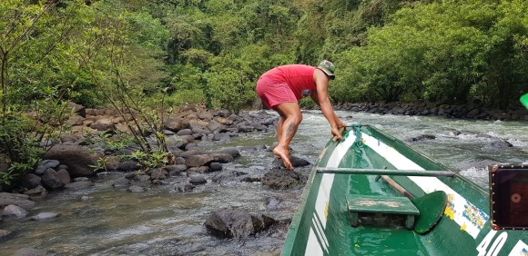 처음에 필리핀 전통배를 타게된다, 처음에는 모터보트 가 강 상류 까지 끌어준다