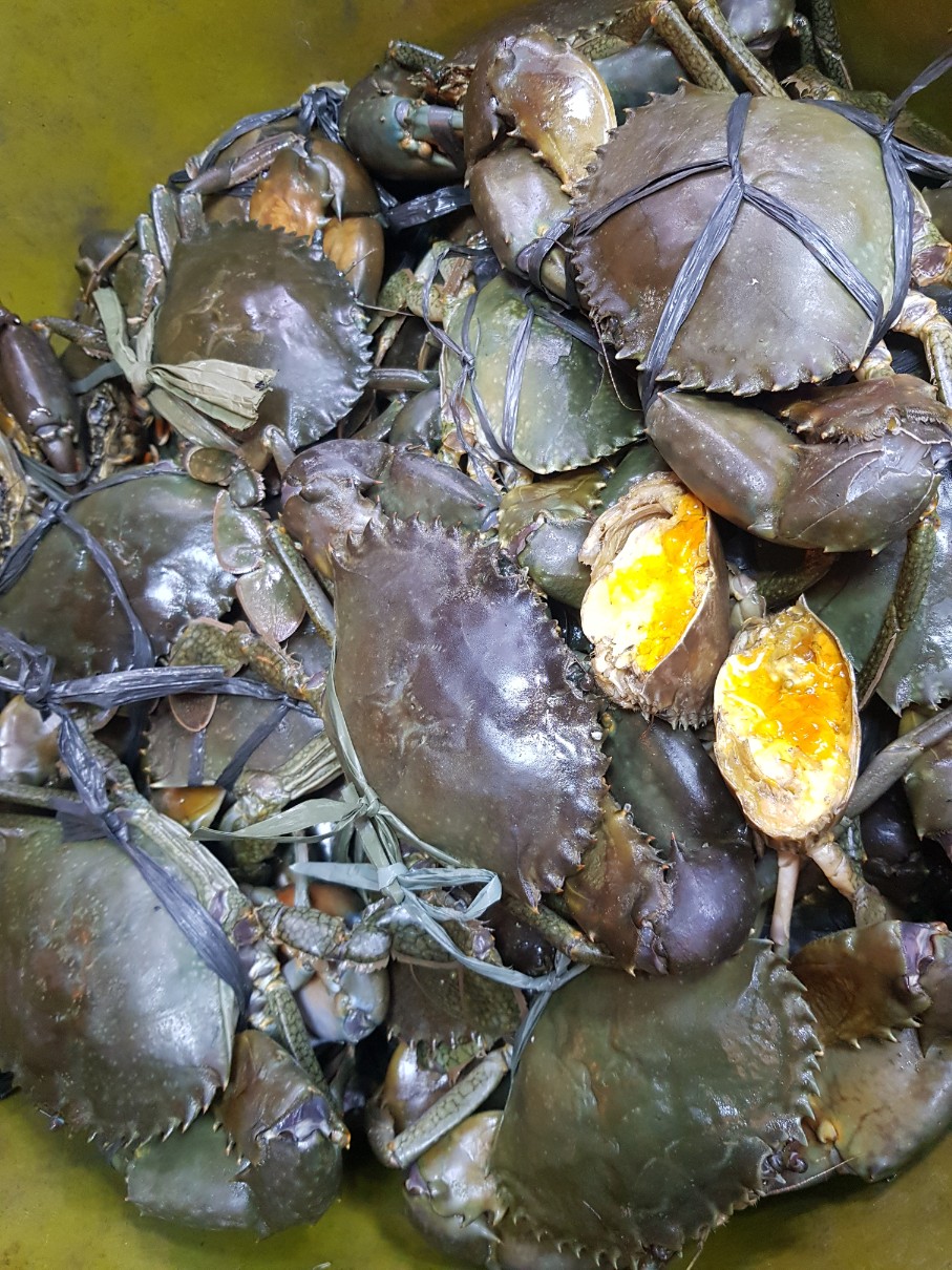 꽃게 - 다양한 방식으로 조리되어 즐겨지는 해산물 중 하나입니다. 보통 고추, 갈릭, 케첩 등으로 맛을 낸 소스와 함께 즐깁니다.