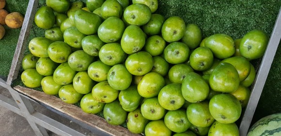 이 작은 망고는 인디언 망고라 불리우며, 익어도 초록색을 띄며 크기가 작고 가격이 매우 저렴합니다.