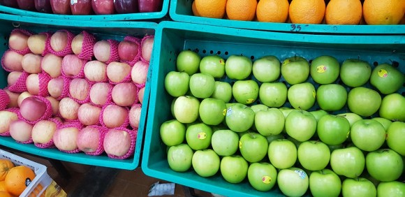 사과, 오렌지, 배, 망고 등 익숙한 과일들이 많이 보입니다.