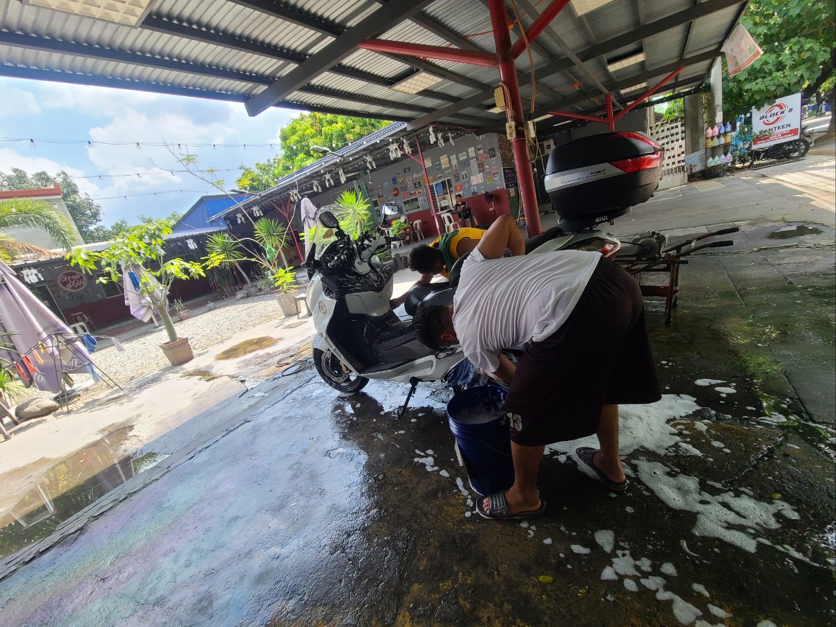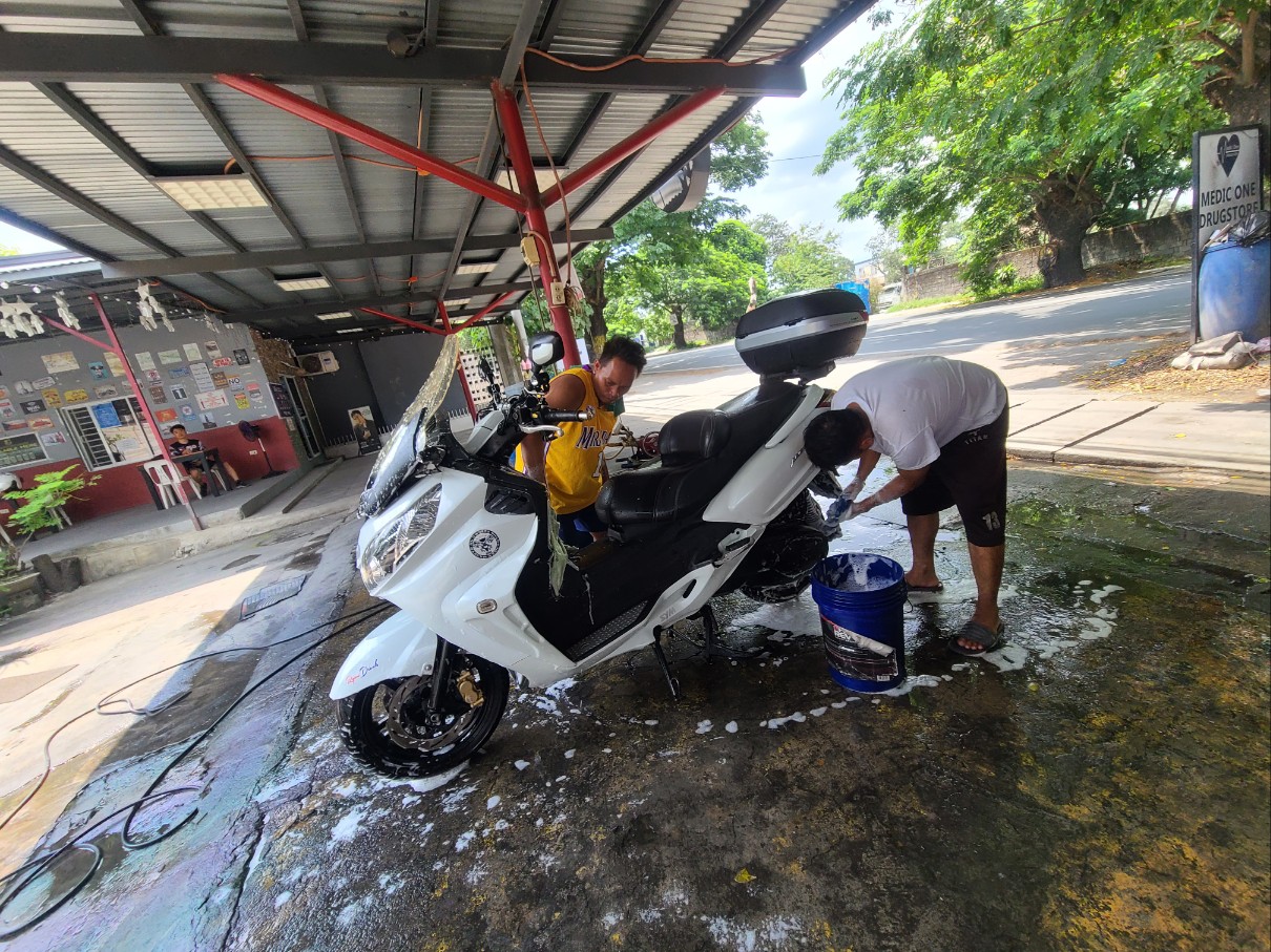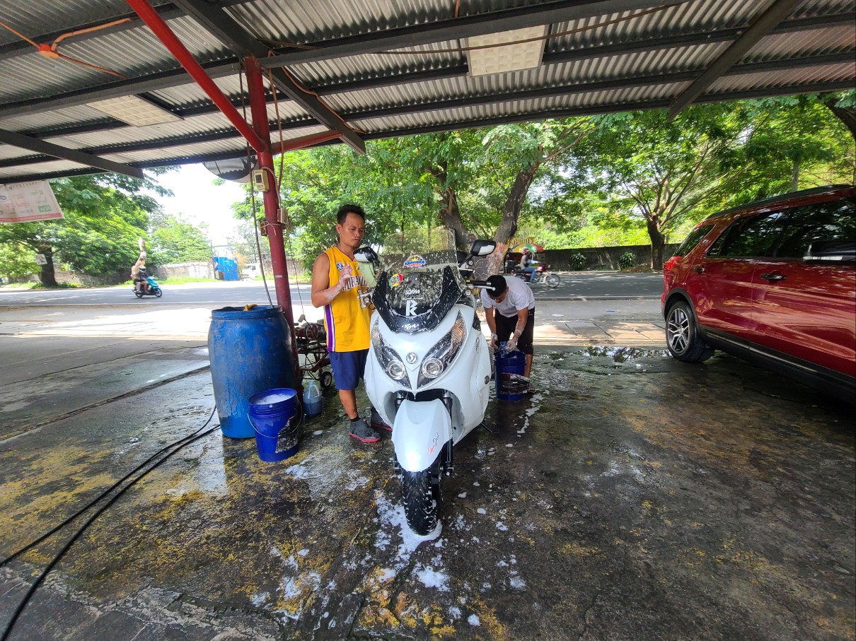 오토바이 손세차 가격은 100페소, 한화 약 2,400원 입니다