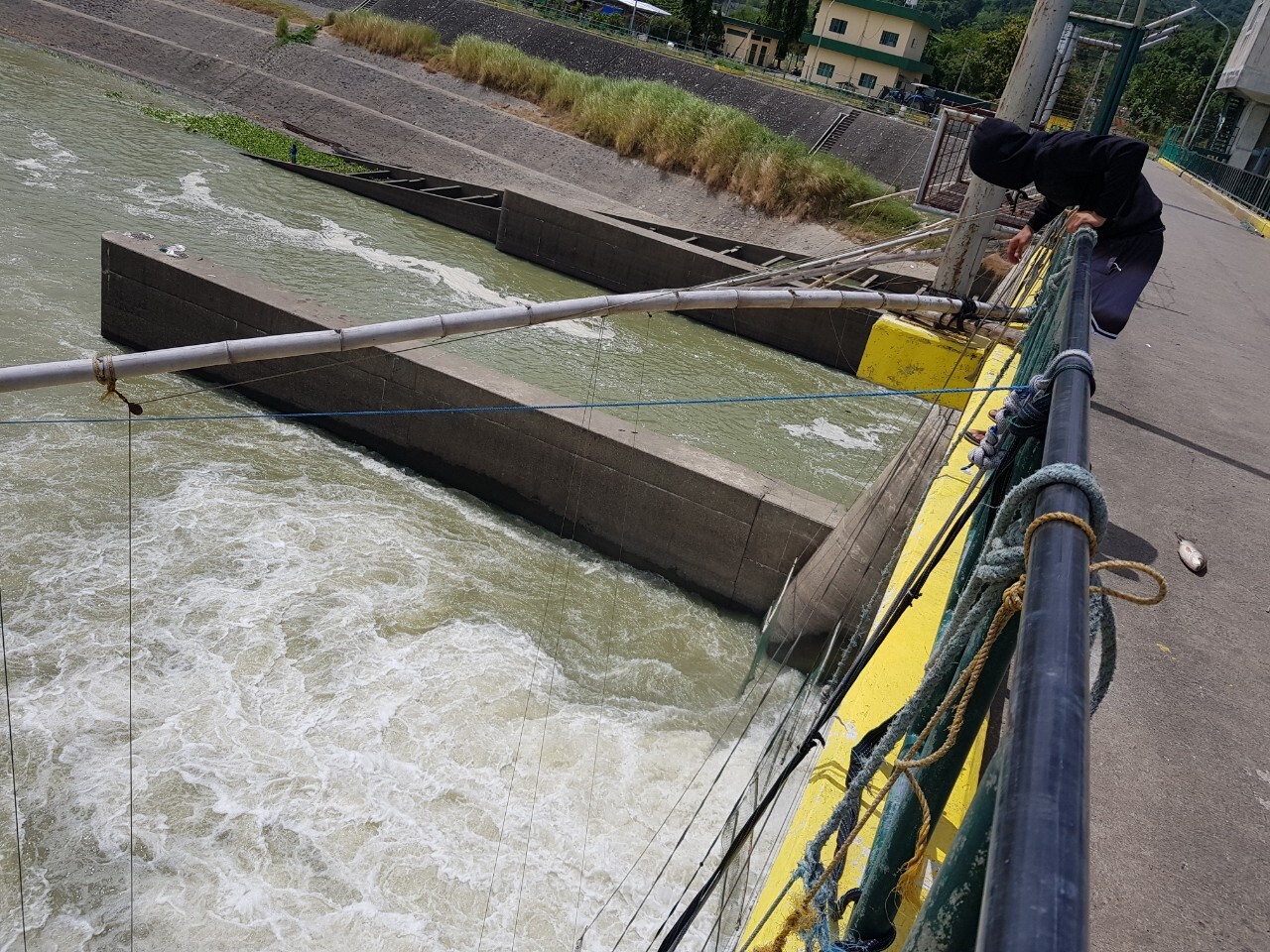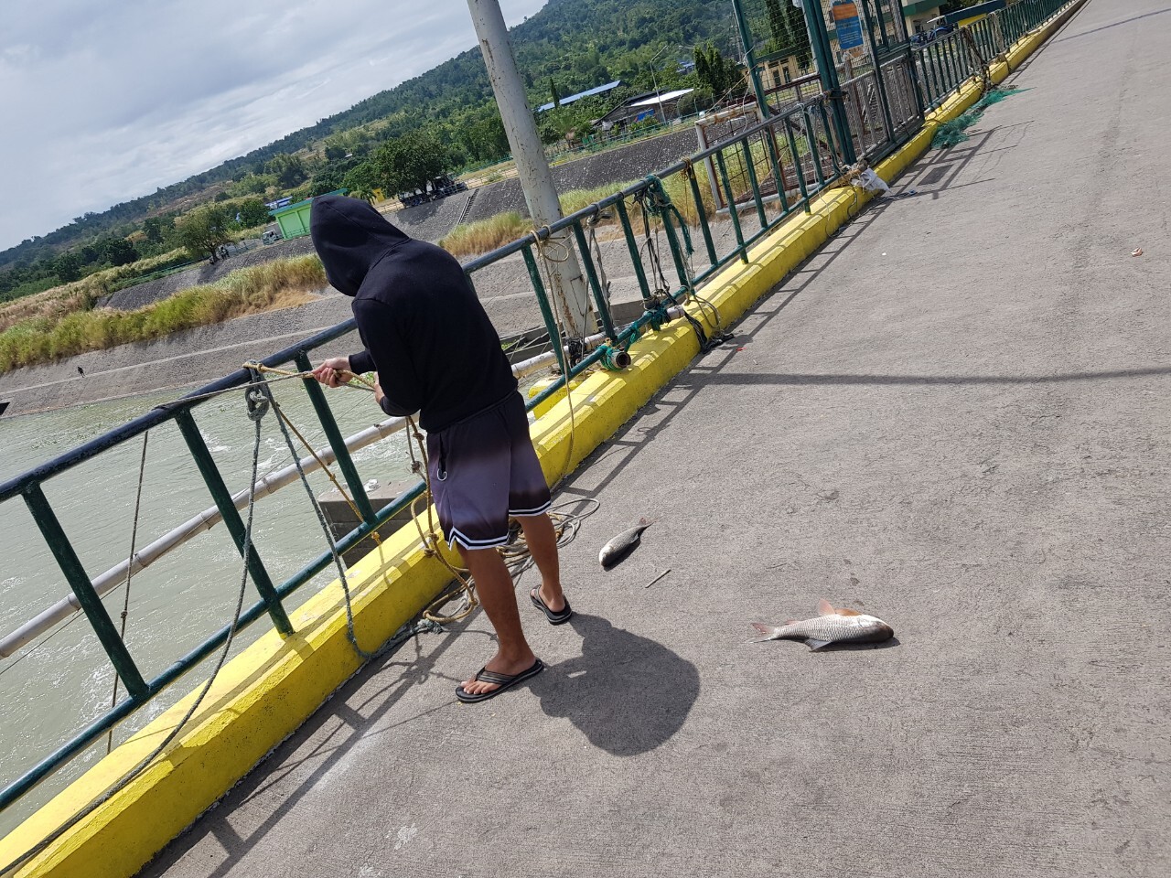 한켠에 필리핀 젊은 청년이 이곳 콩다동댐(cong dadong dam) 위에서 낚시중 입니다.