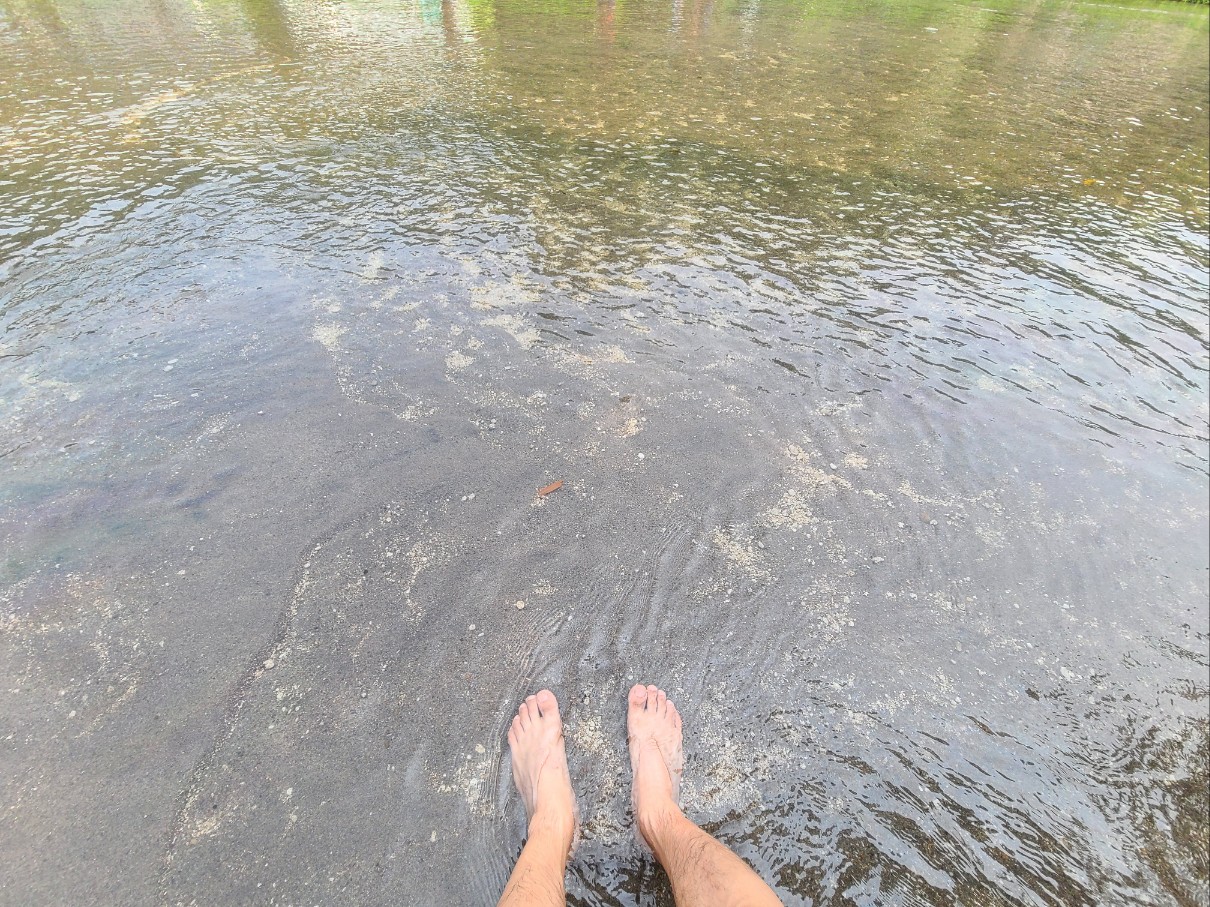 수심이 전혀깊지 않아서 아이들이 여기저기 헤짚고 돌아다녀도 안전합니다