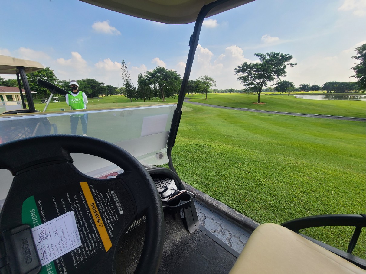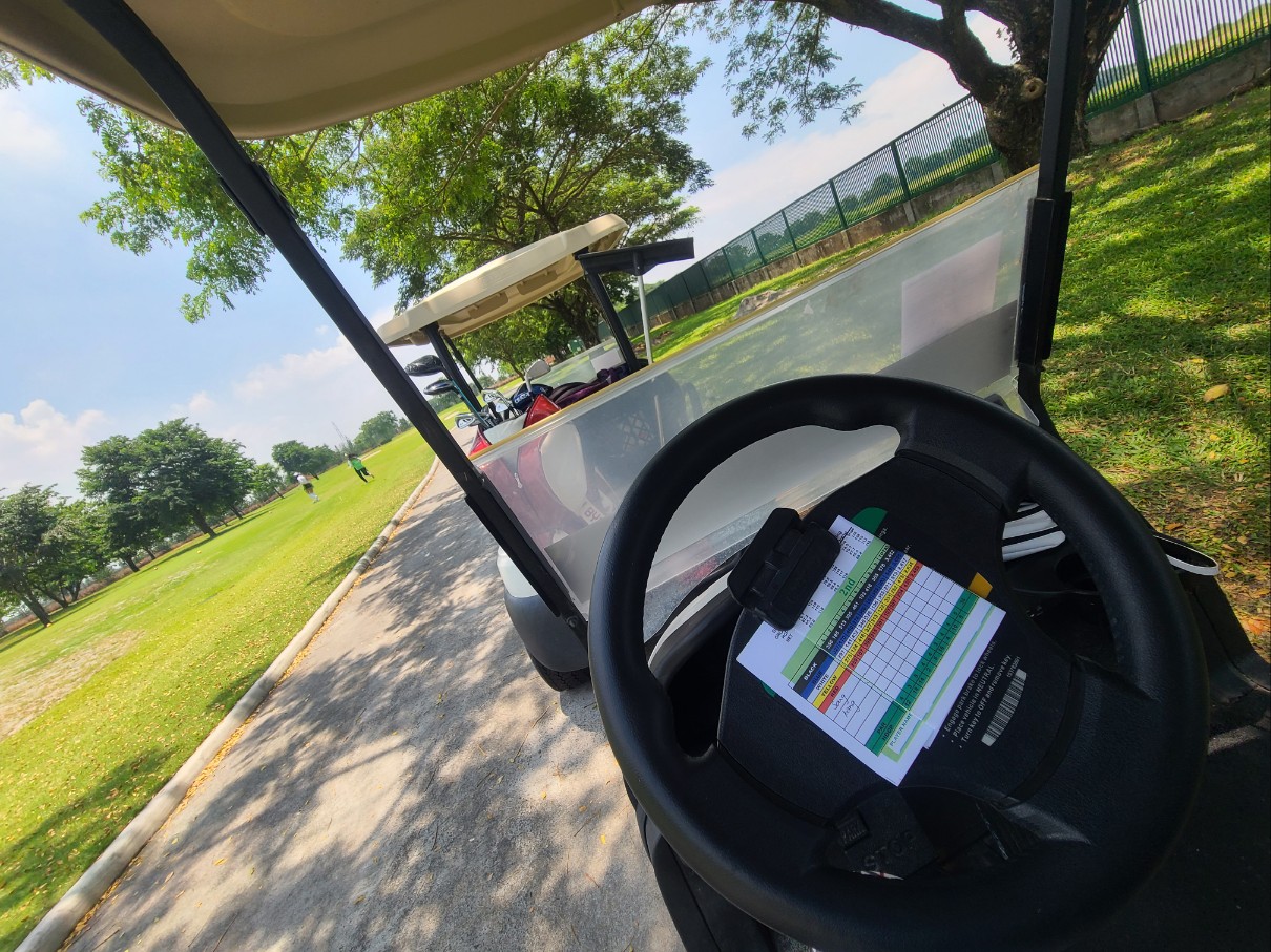 첫 드라이버샷 이후 세컨샷 하는곳까지 카트를 타고 이동이 가능 합니다