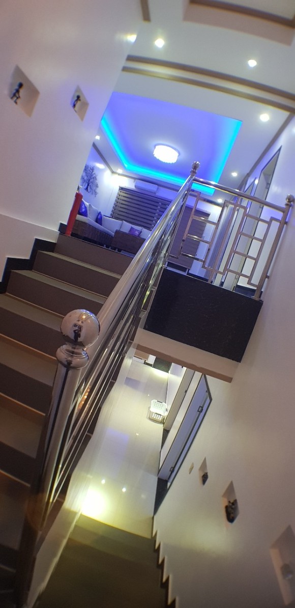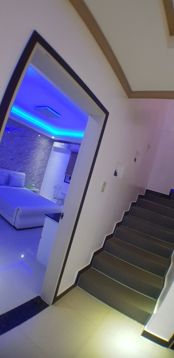 풀빌라 실내에 있는 1층과 2층을 잇는 실내계단 입니다