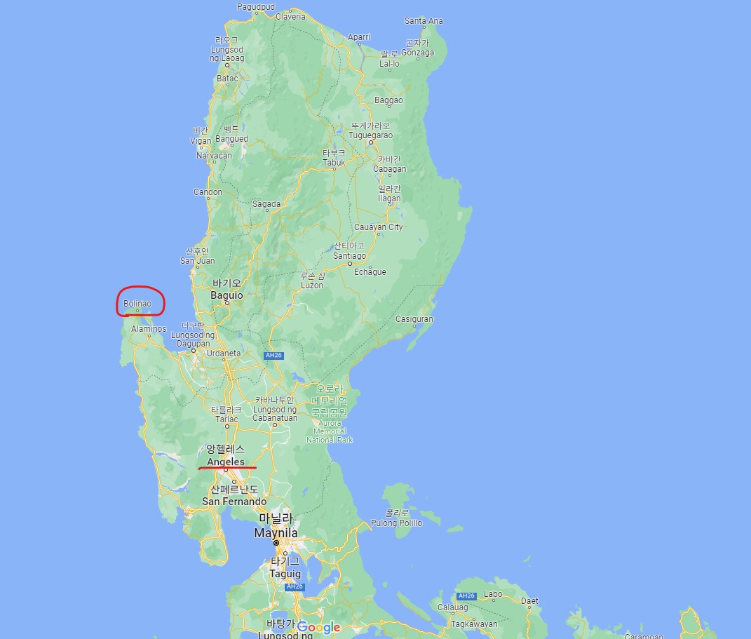 출발지인 클락 앙헬레스 와는 차량으로 약 5시간 거리에 자리해 있습니다