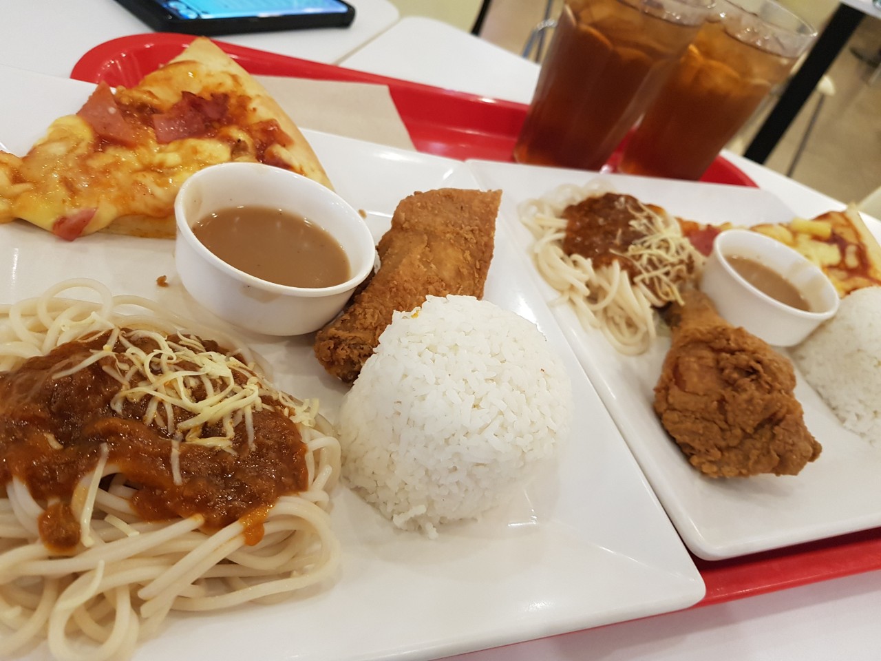파스타, 치킨, 피자, 밥 그리고 아이스티 로 구성된 세트메뉴 입니다.