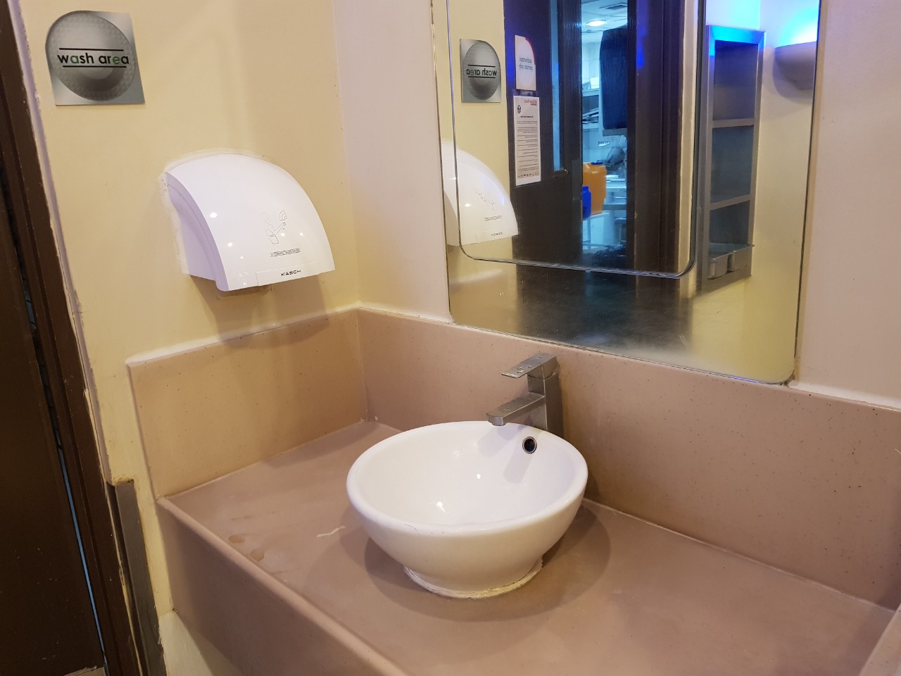 그린위치(green wich) 매장 한켠에 손을 씻는곳과 핸드 드라이기 가 구비되어 있습니다.