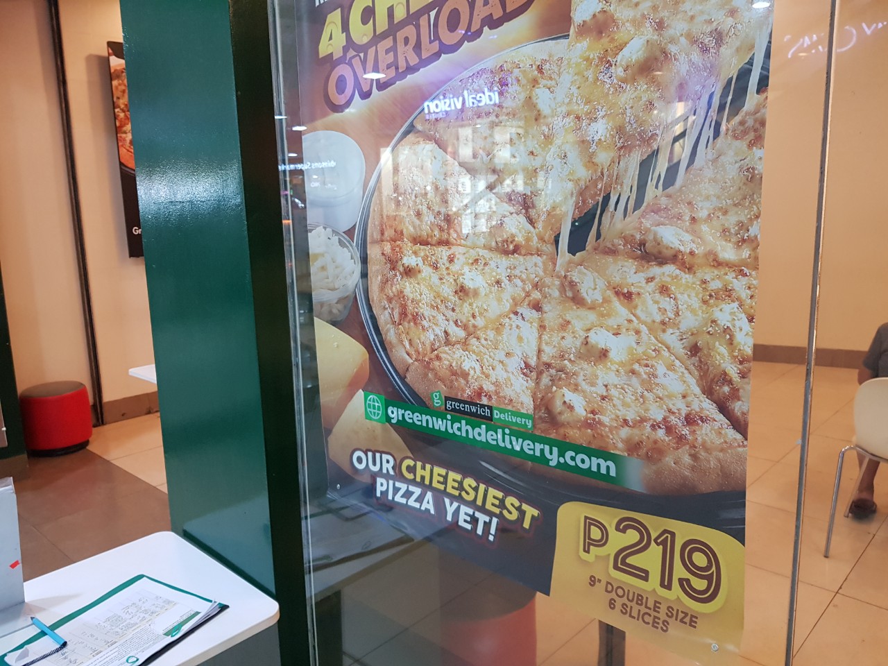 필리핀 그린위치(green wich) 네포몰 점 치즈피자 한판에 219페소