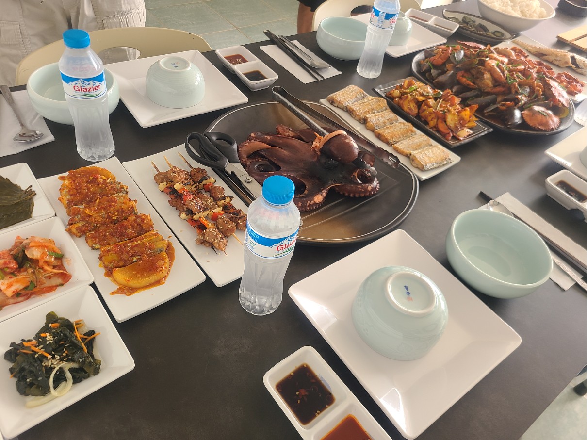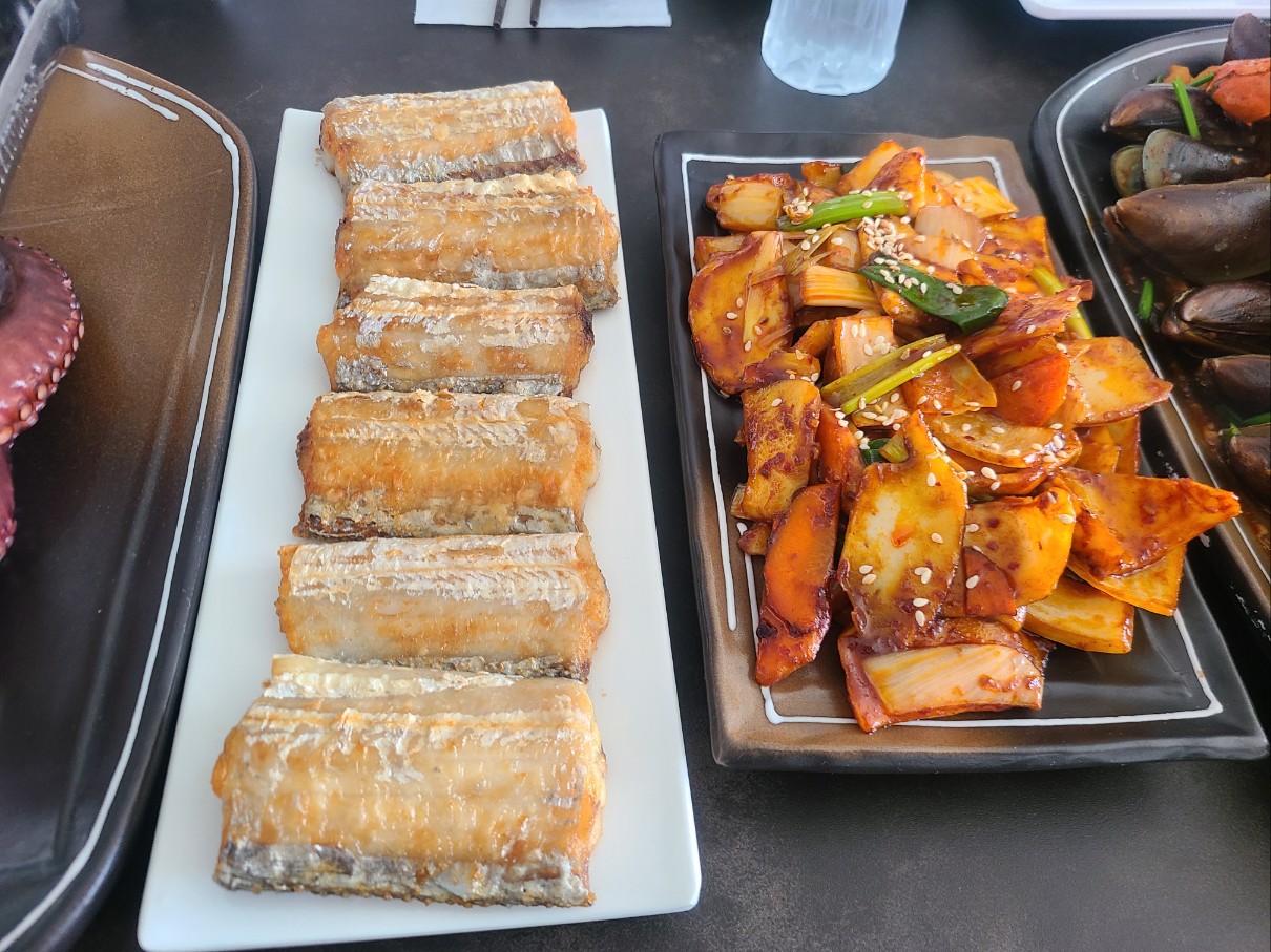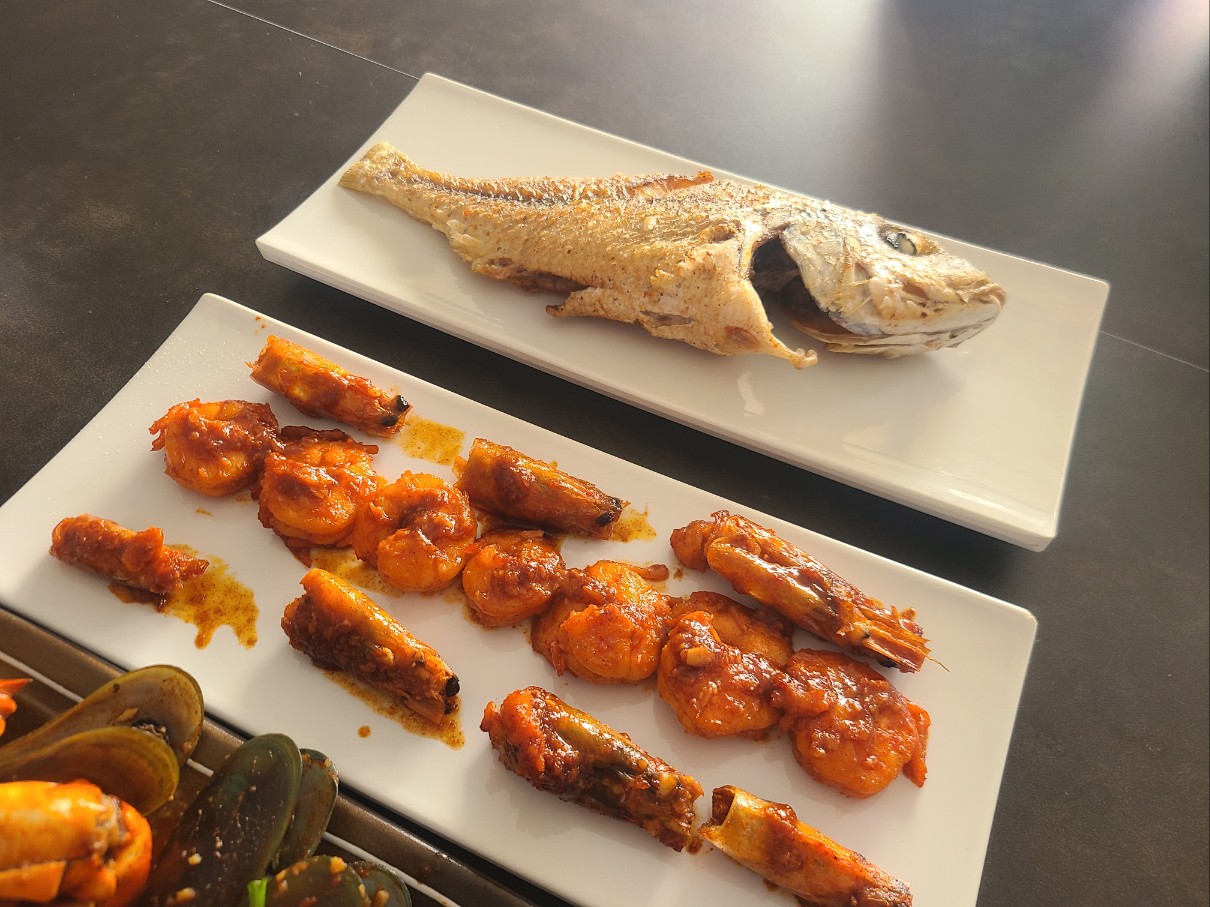 갑오징어, 오분자기 , 갈치찜, 문어숙회 , 꼬치바베큐, 라푸라푸 생선 등