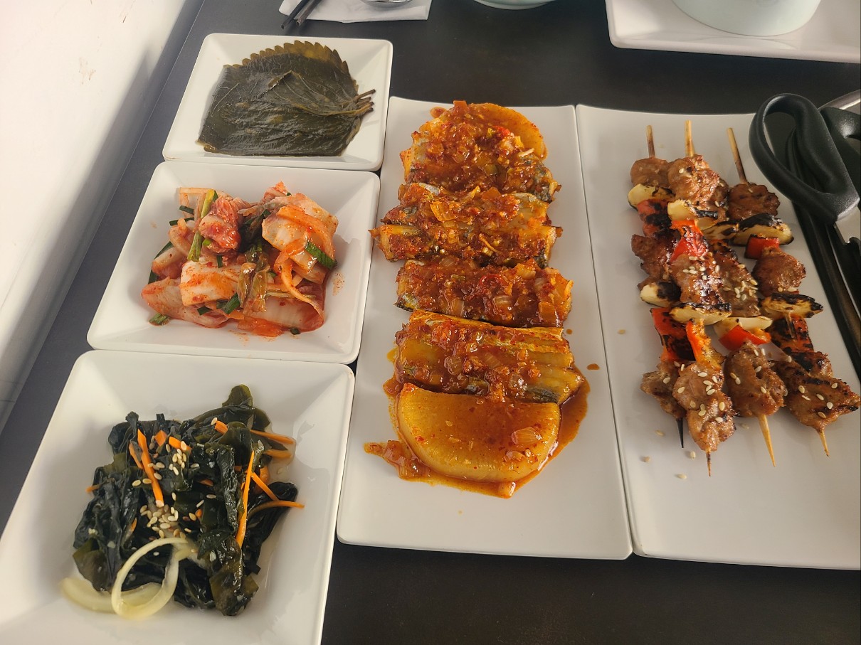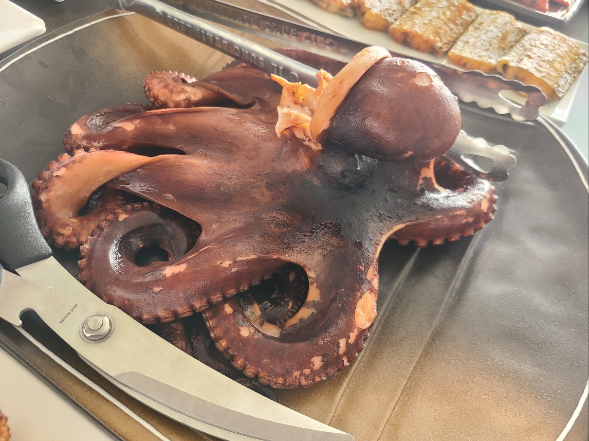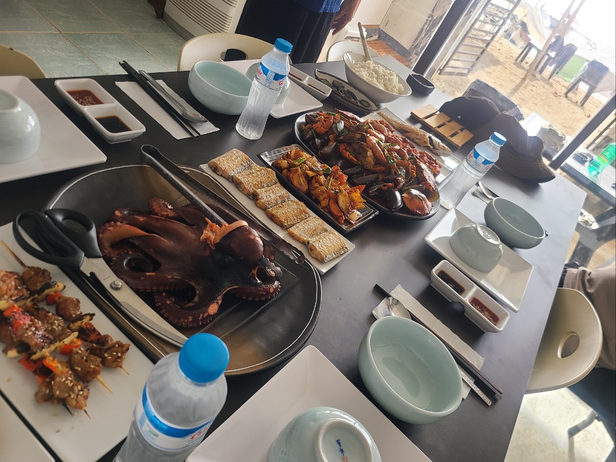 갑오징어, 오분자기 , 갈치찜, 문어숙회 , 꼬치바베큐, 라푸라푸 생선 등