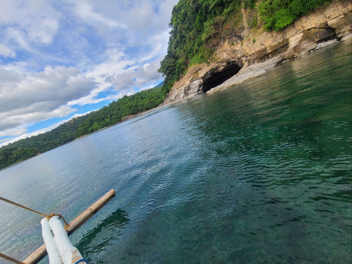 배(방카) 를 타고 바타안(bataan)의 바다안으로더 들어가 보니 저멀리 해안동굴이 보입니다.