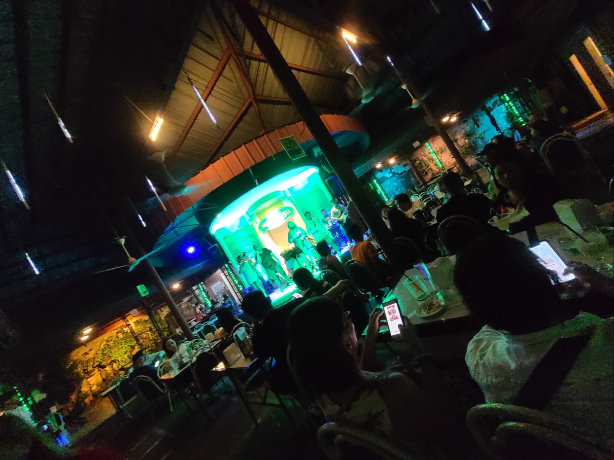 필리핀 라이브밴드팀이 무대에서 노래를 해줍니다