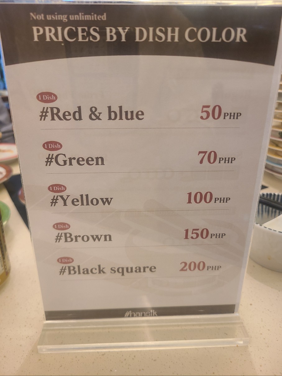 파란접시 50페소 부터 검은접시 200페소 까지 준비가 되어있습니다