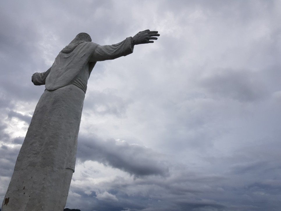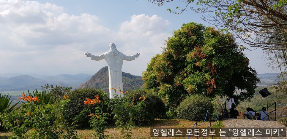 앙헬레스 에서 떠난 모나스테리오 데 딸락 대성당 에는 대형 조각상 이 산아래를 보며 두 팔을 벌려 세상을 품고 있습니다.