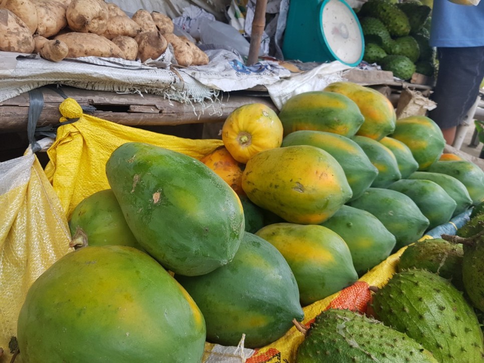 대성당 앞 노점상 에서 다양한 열대과일을 판매하고 있습니다
