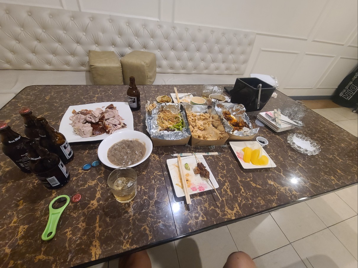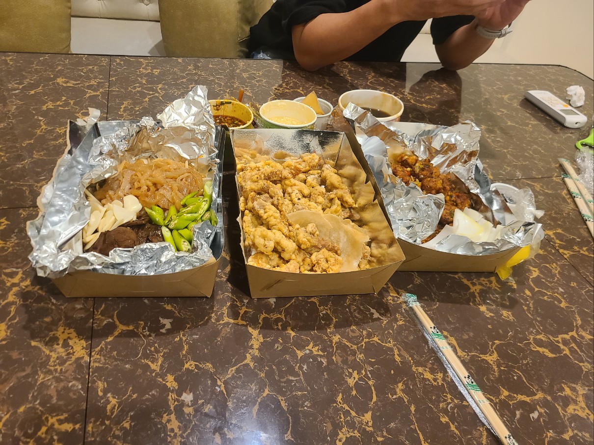 허기를 달래기 위해 우선 미스터왕 이라는 중식집에서 배달을 시킨 오향장육, 탕수육, 깐풍기 등을 안주로