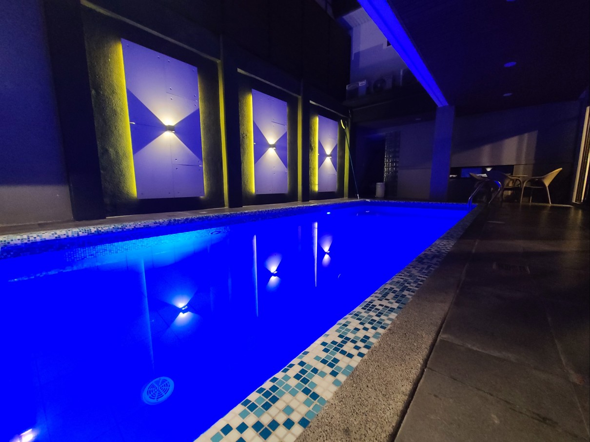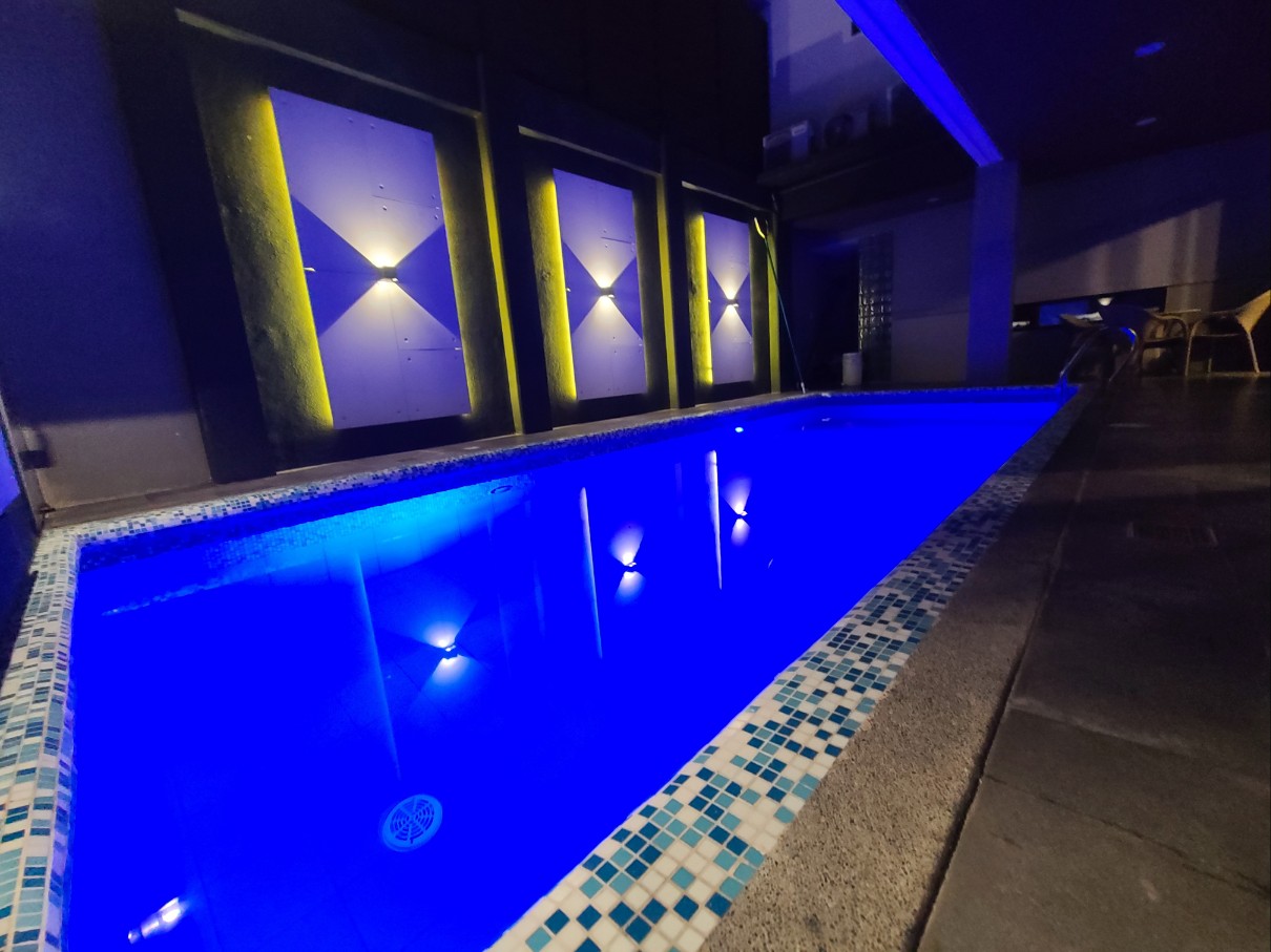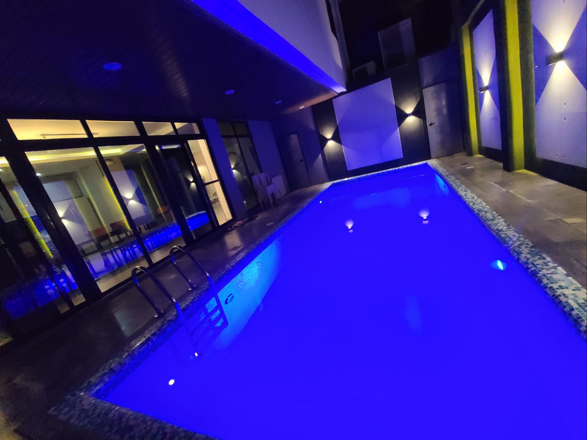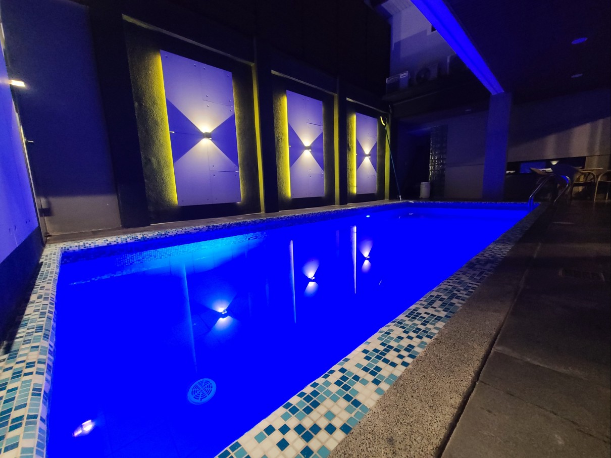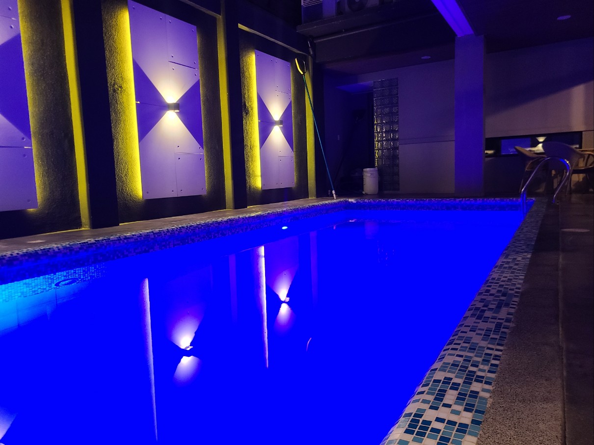 개인수영장이 유리를 통해 보이며, 투숙객 분들만 이용하시는 프라이빗 전용 노래방, 수영장 입니다