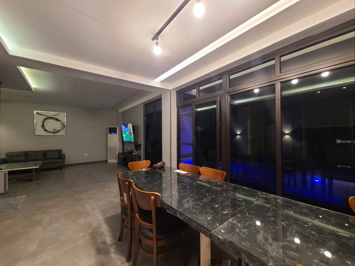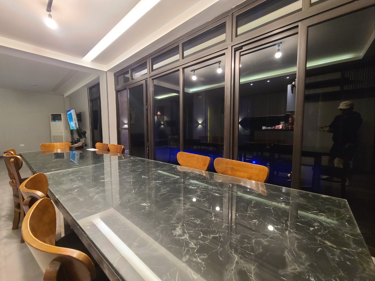 6룸 럭셔리 루이스 앙헬레스 풀빌라는 12인용 대형 식탁이 1층에 마련되어 있습니다