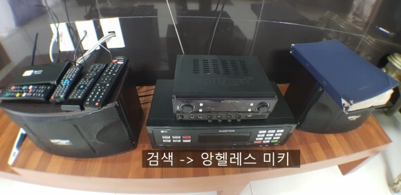 음주가무를 위해 거실에는 노래방 시스템이 준비되어 있습니다