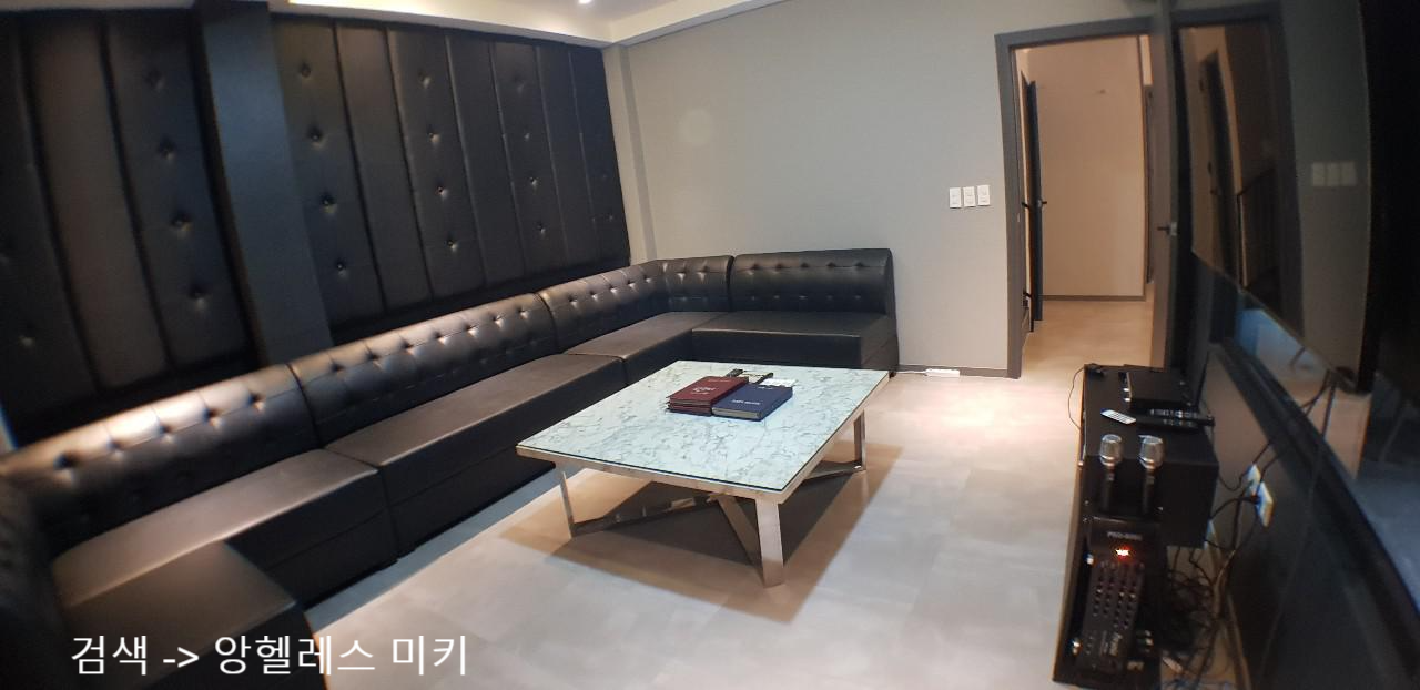 편안한 고급 럭셔리 가죽소파에 앉아서 잘 준비된 방음시스템이 완벽한 노래방룸 안에서